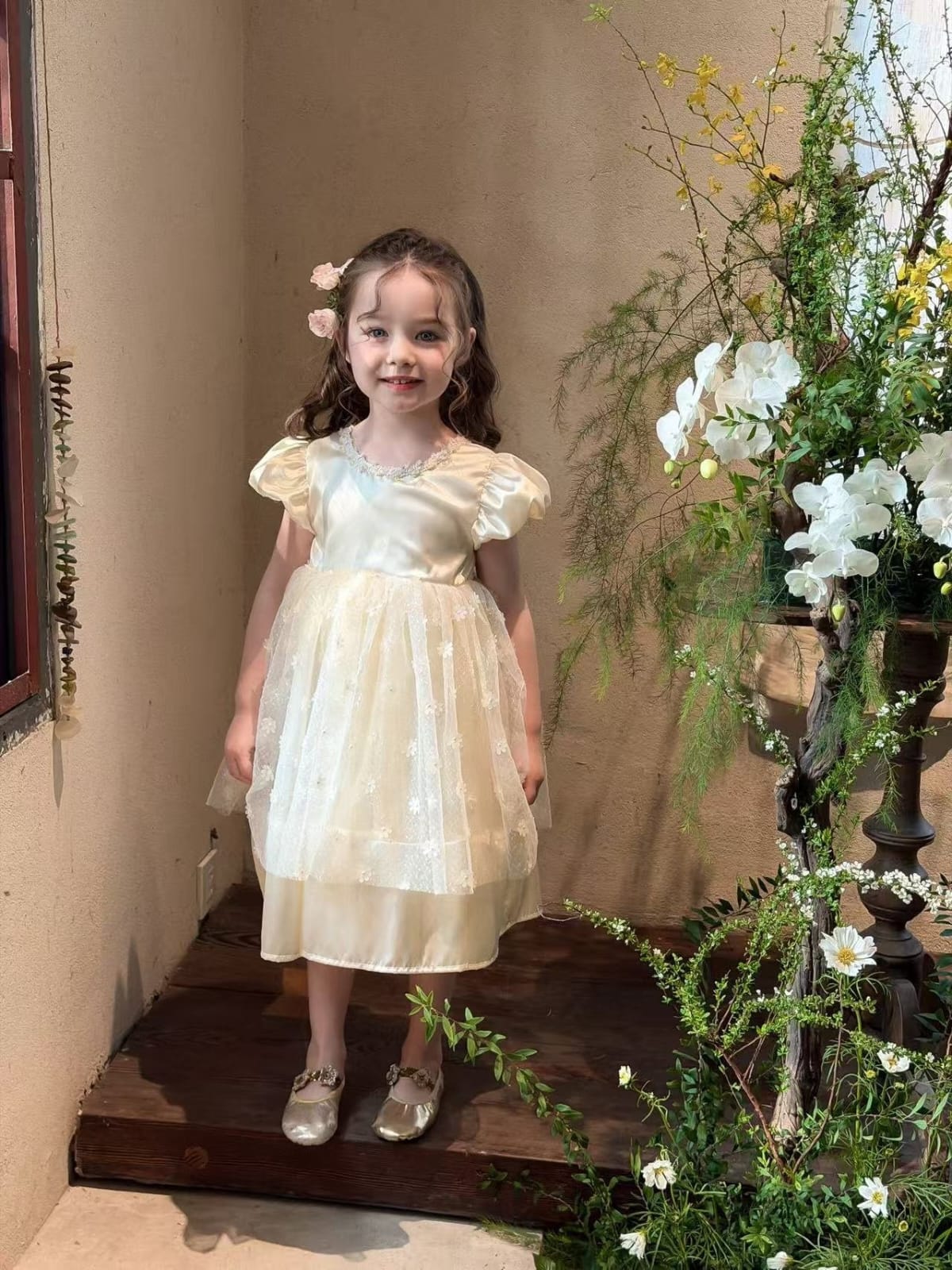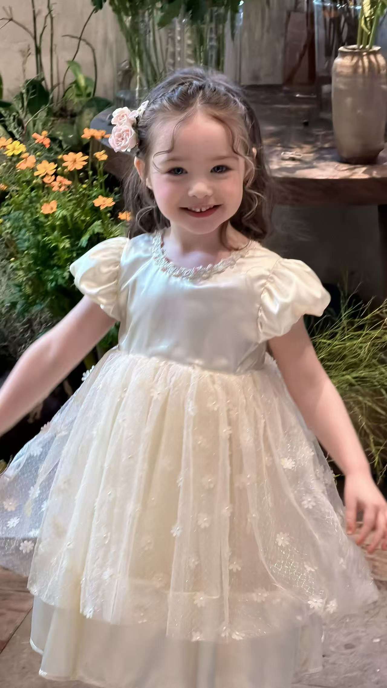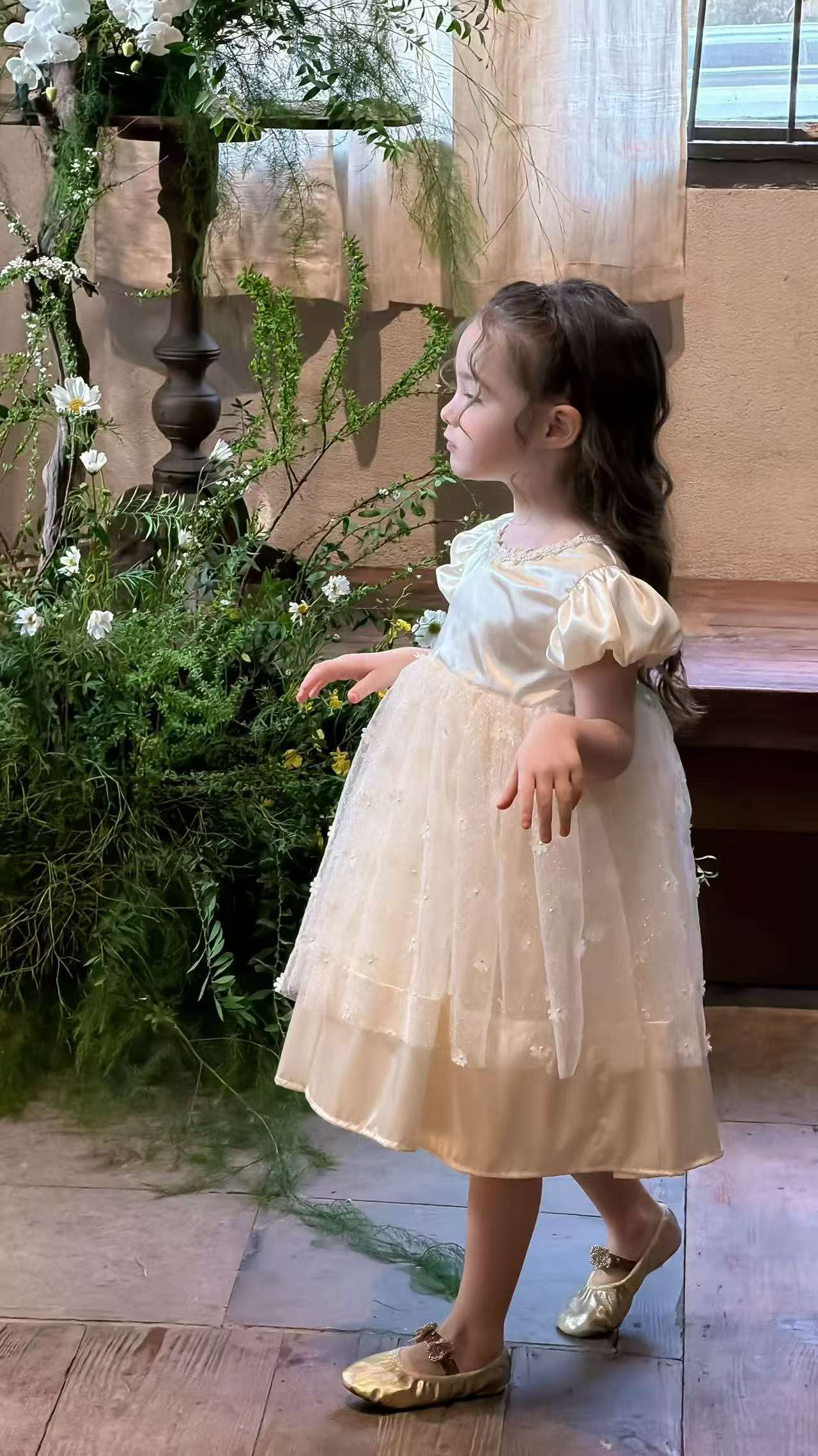 公主袖花花連身裙