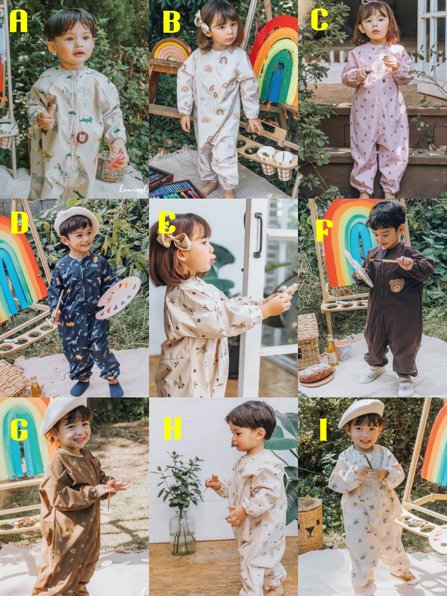 潮流興玩messy play,比小朋友更多元既刺激和趣味學習,一件連身嘅防水衣就啱晒啦,由身包到落腳,點玩都得😊Pattern : A-I 尺寸 (可參考尺寸圖表)📌 Size S : 衣長76cm📌 Size M:衣長82cm📌 Size L : 衣長 90cm