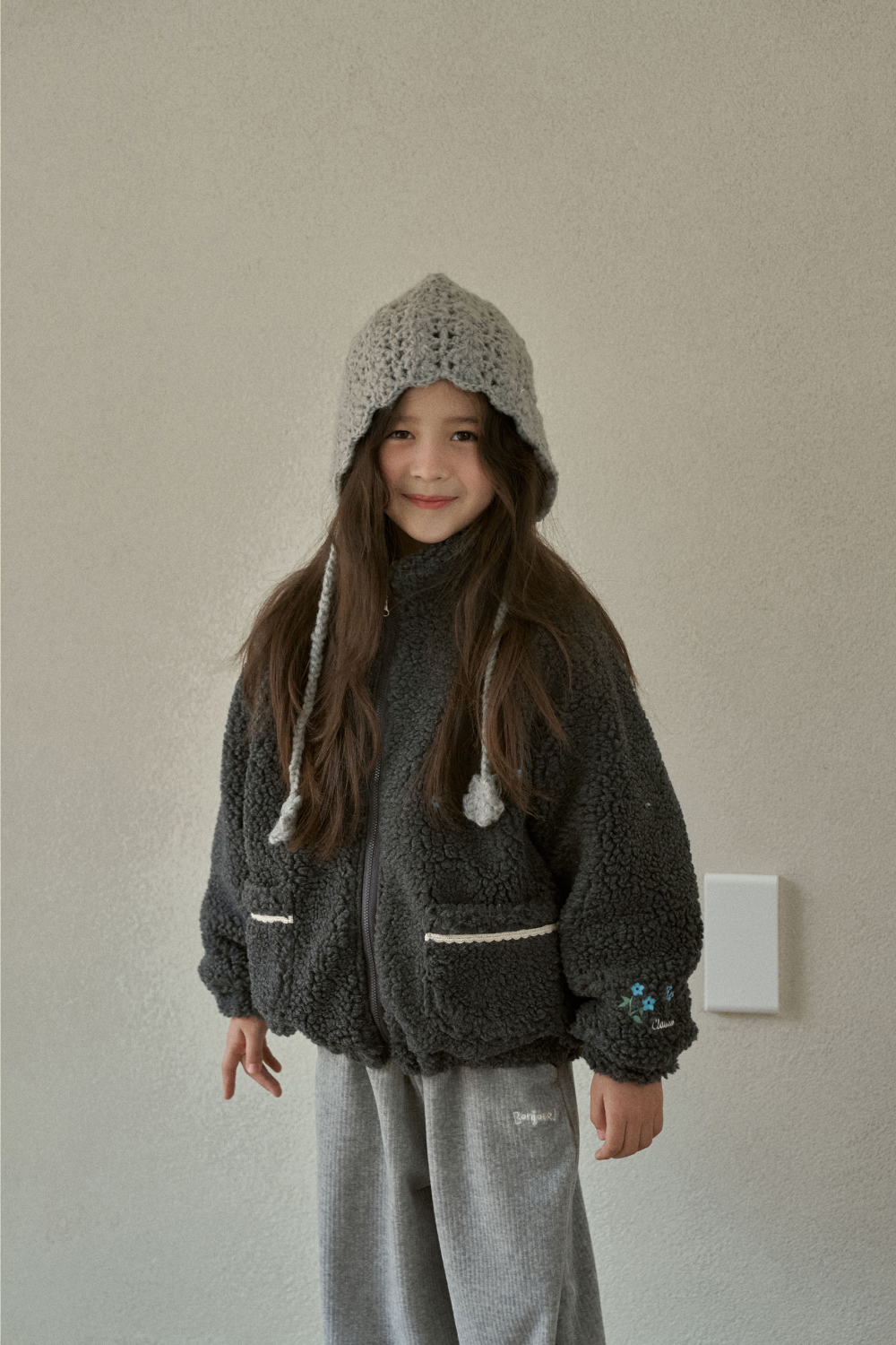 刺繡花花毛毛外套
