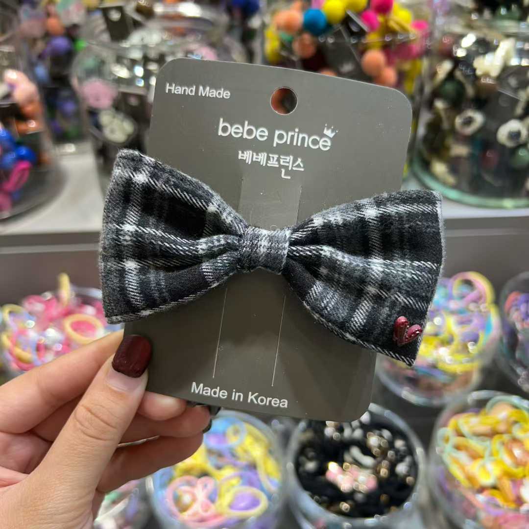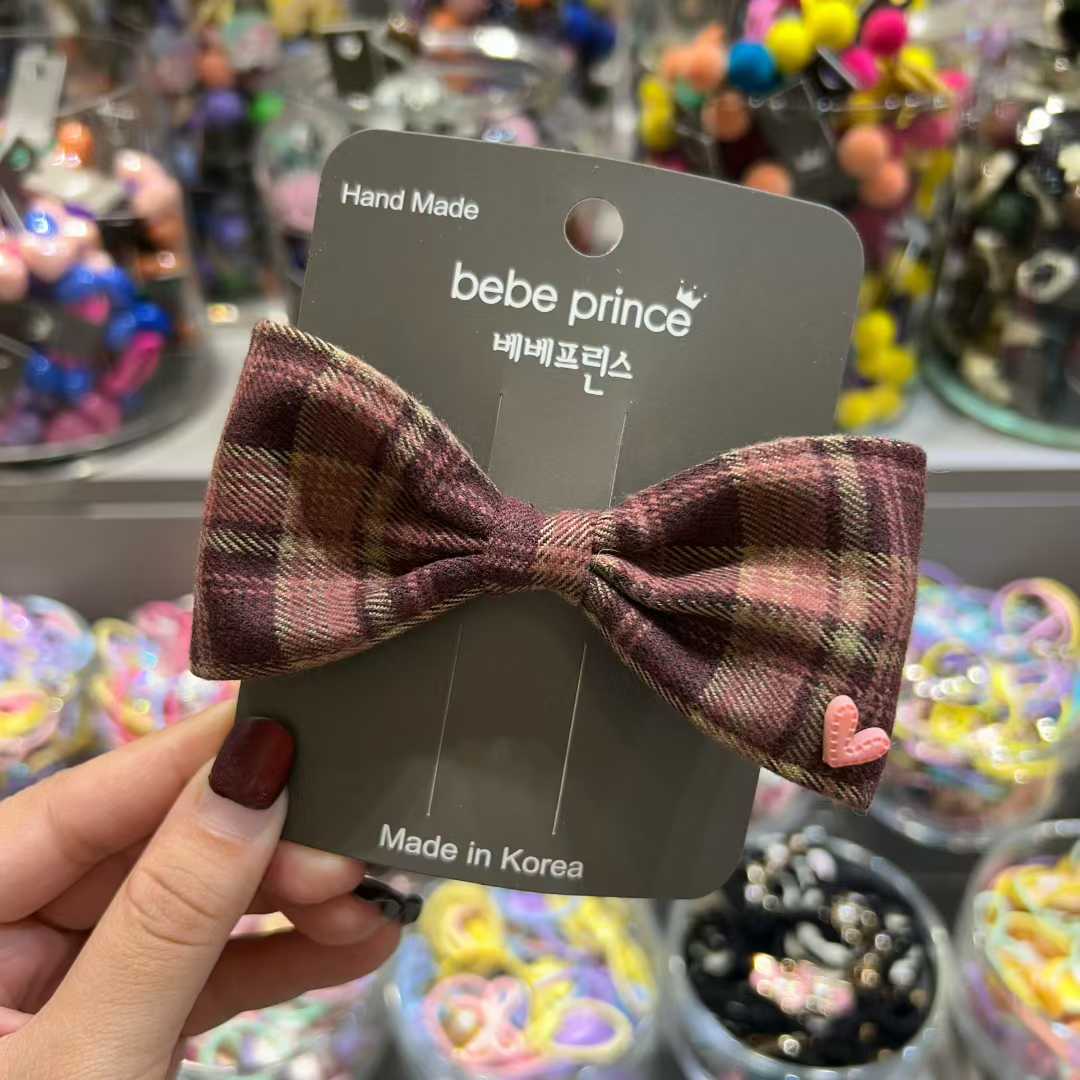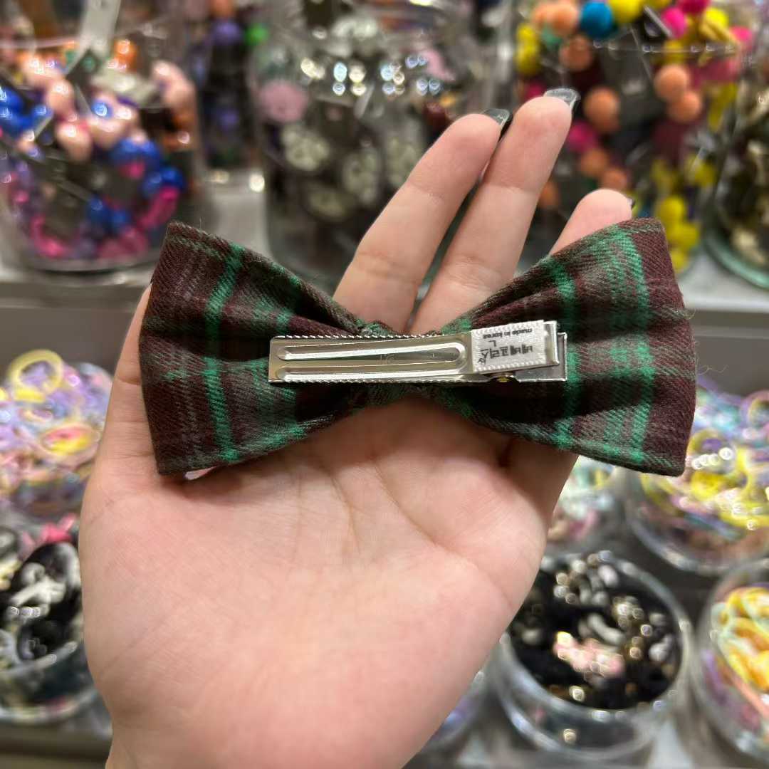 復古格仔蝴蝶結髮夾