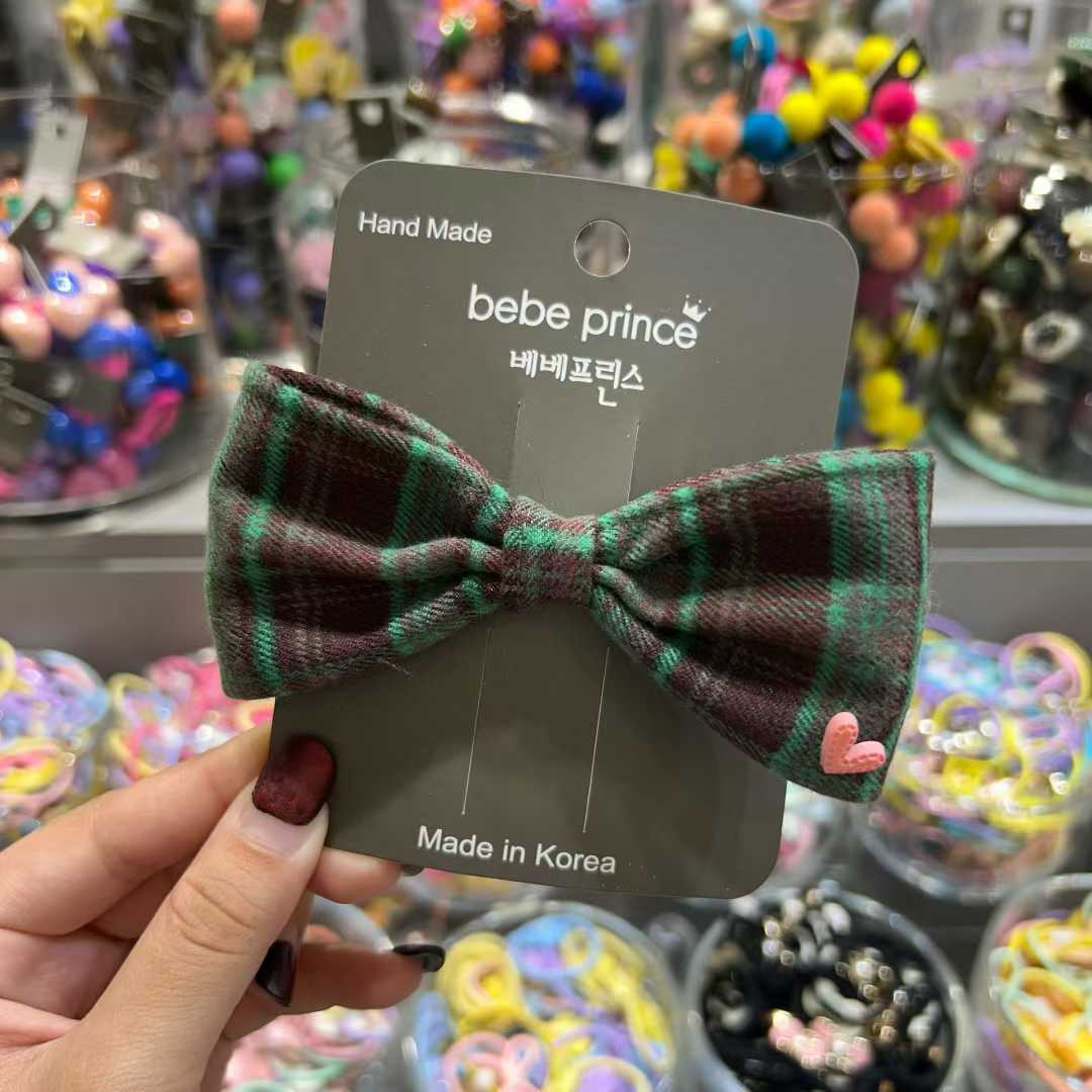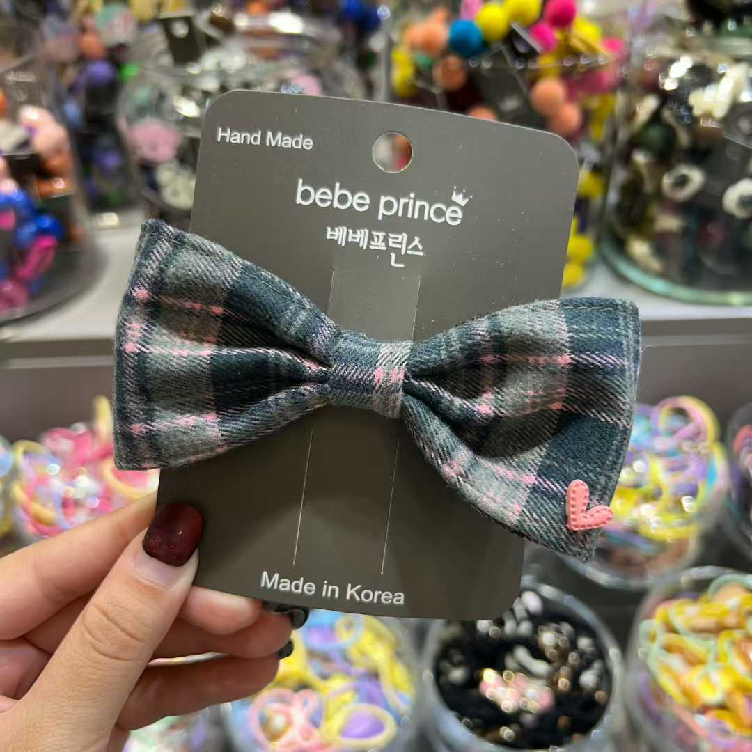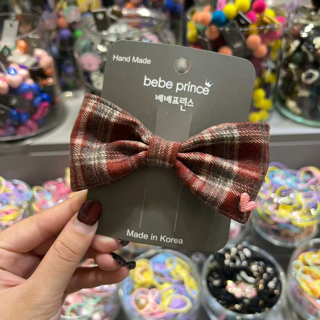 復古格仔蝴蝶結髮夾