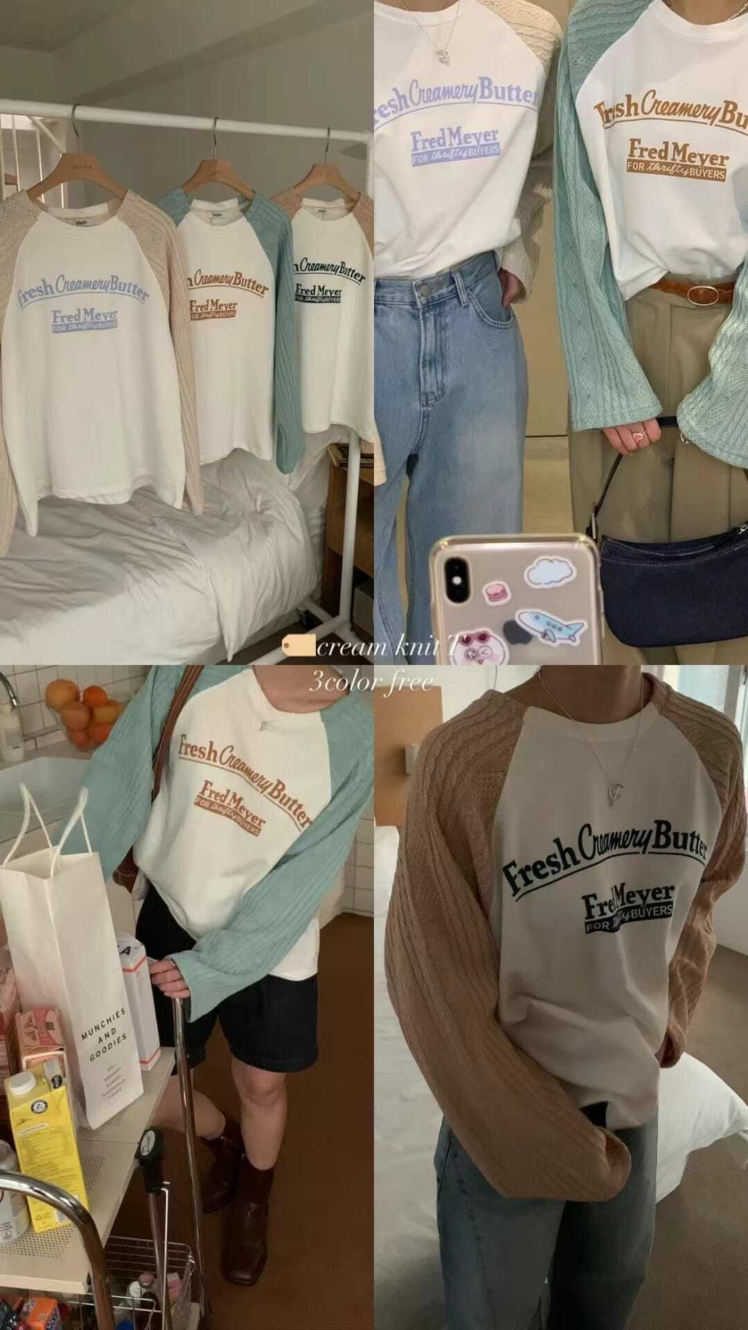 針織袖字母Tee