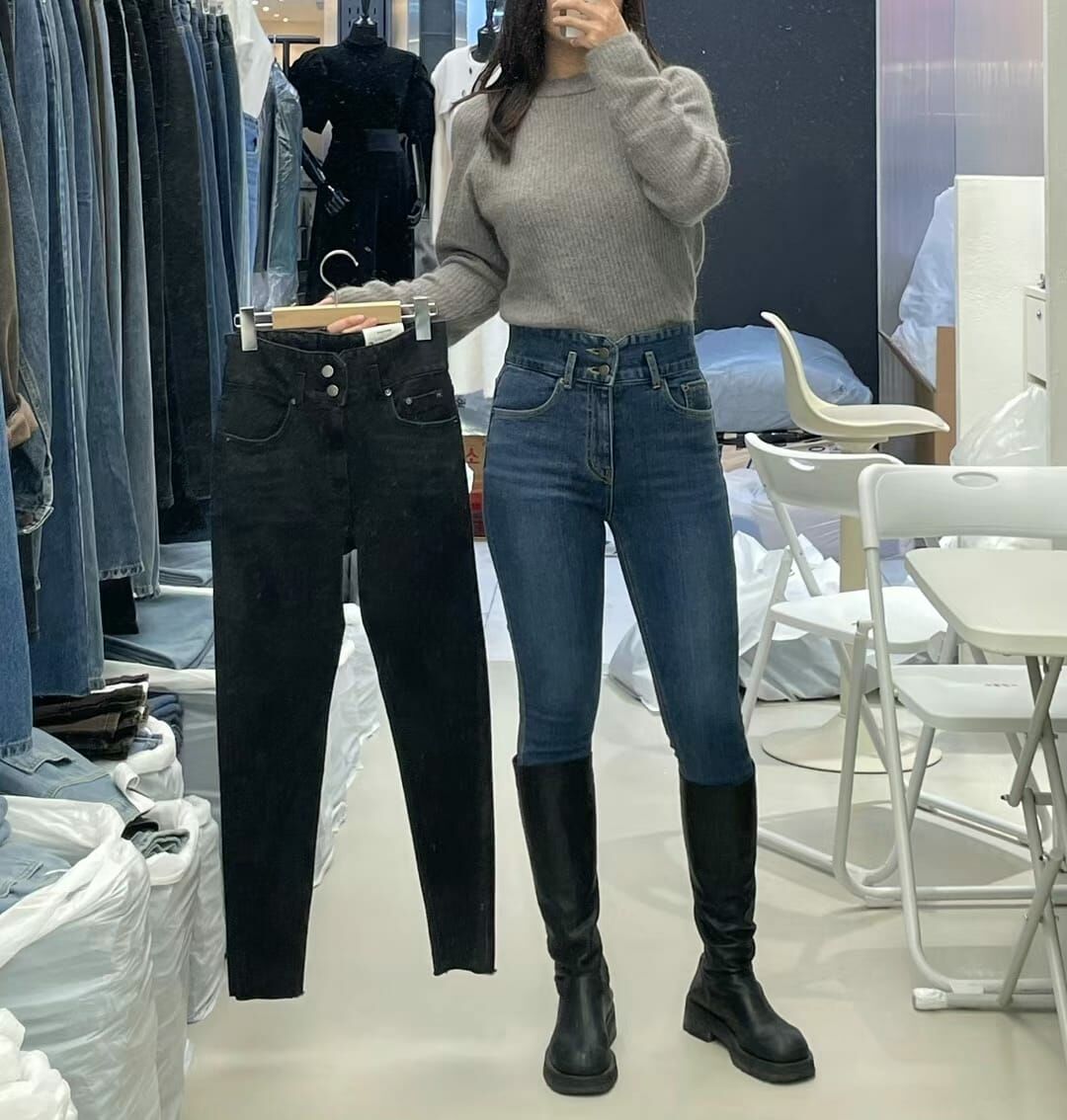 高腰顯瘦彈力牛仔褲 (薄羊絨)