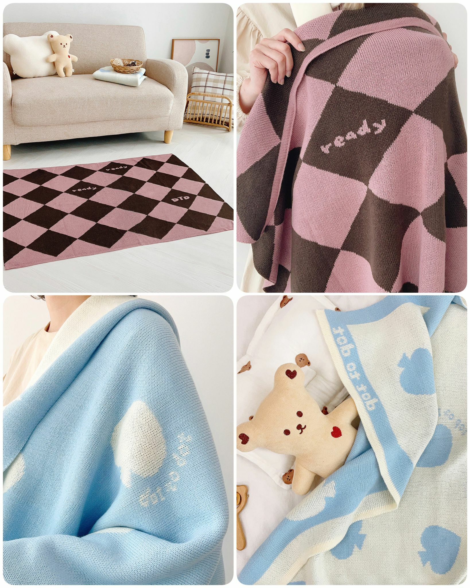 🐻 Dot to Dot 🐻 Change Bear 系列 - 粉紅菱格針織毯