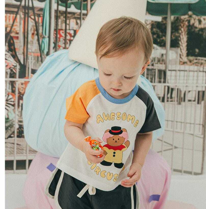 🧸dot to dot 馬戲團熊仔拼色短袖Tee & 防晒 Pants🧸