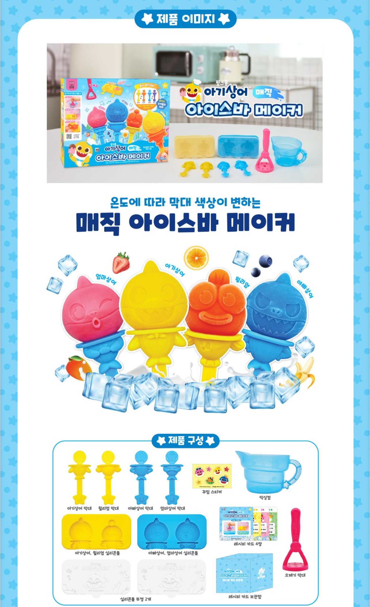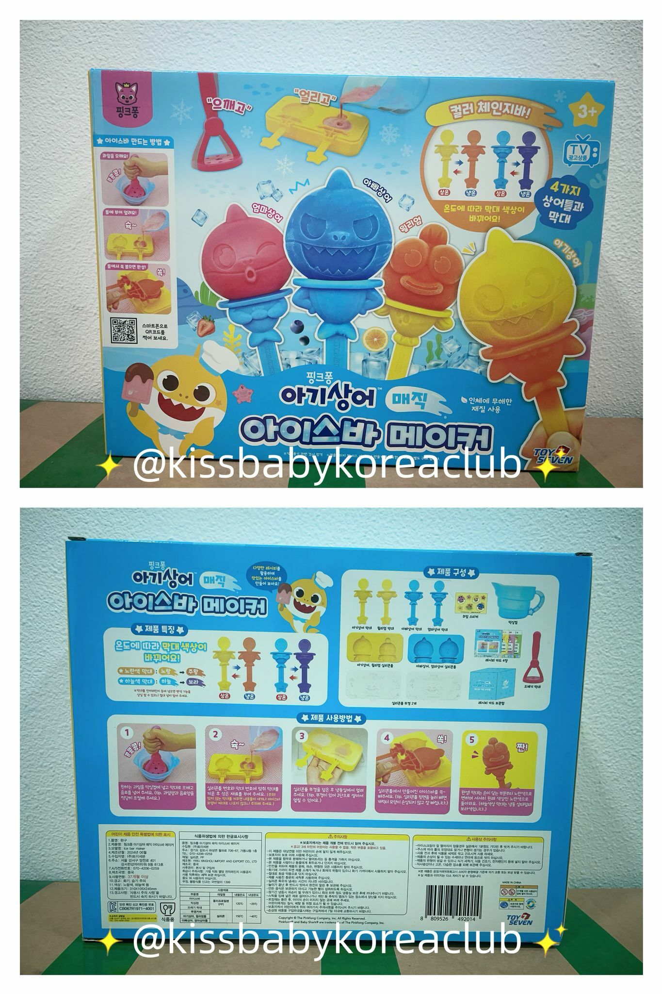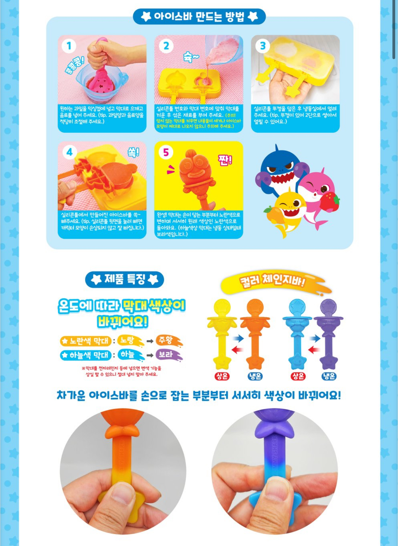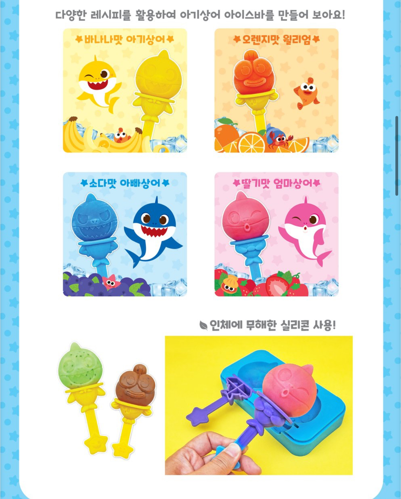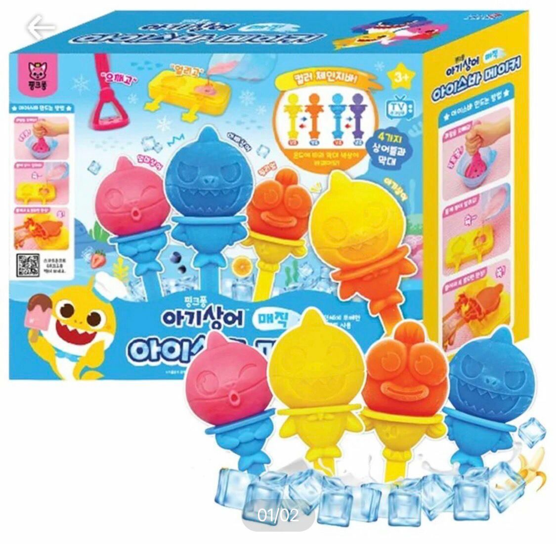 炎炎夏日,不如同小朋友自製健康雪條,健康又好味😍🌟套裝包括4款Baby Shark角色模具連蓋, 4支雪條棒, 攪拌杯, 壓碎棒, 4張食譜,🌟將新鮮生果/朱古力等材料放入攪拌杯壓碎後按喜好加入果汁🍹牛奶🥛攪均後倒入已安裝好雪條棒嘅雪條模具(約30ml容量), 放入冰格等雪條結冰就完成😋😋😋🇰🇷韓國直送🇰🇷